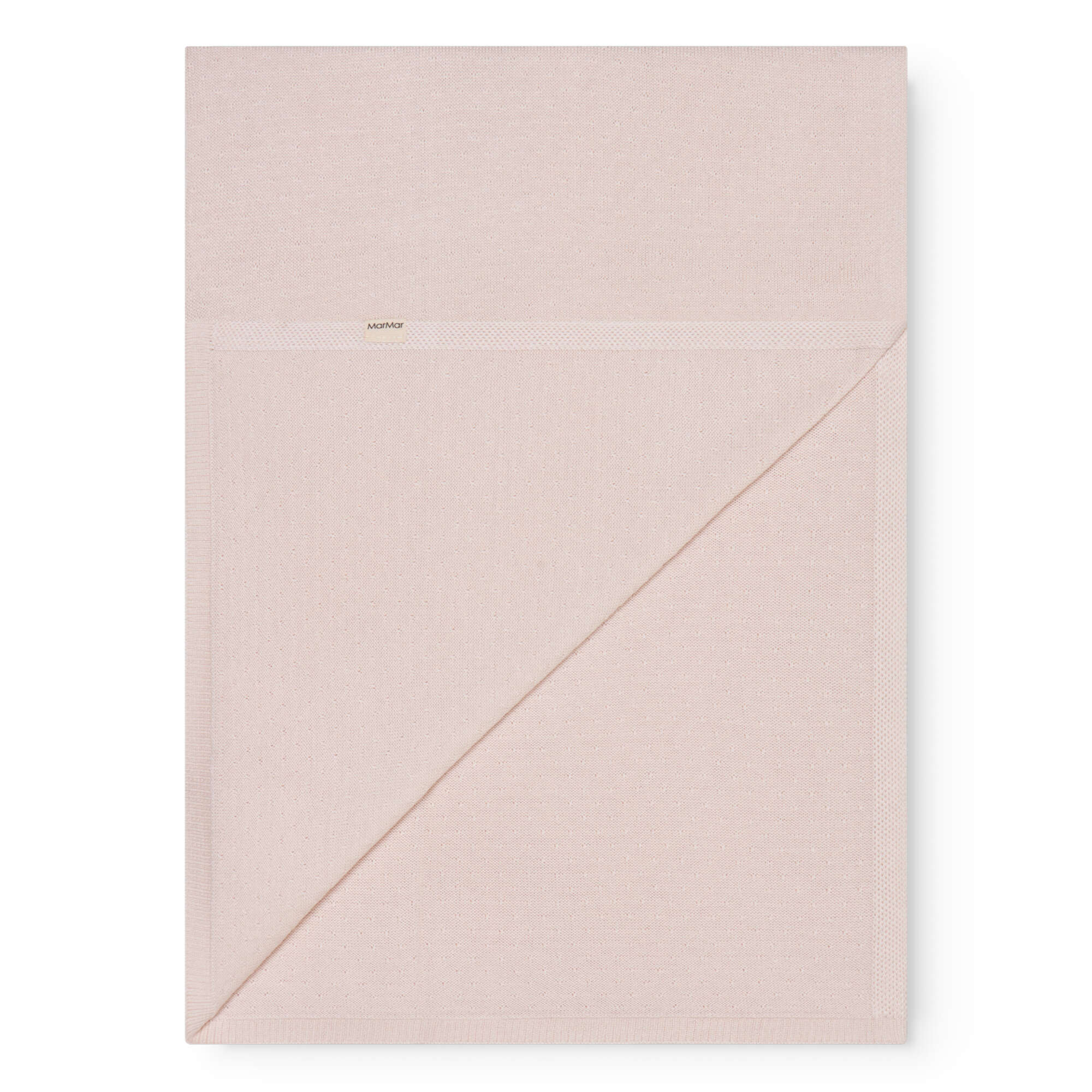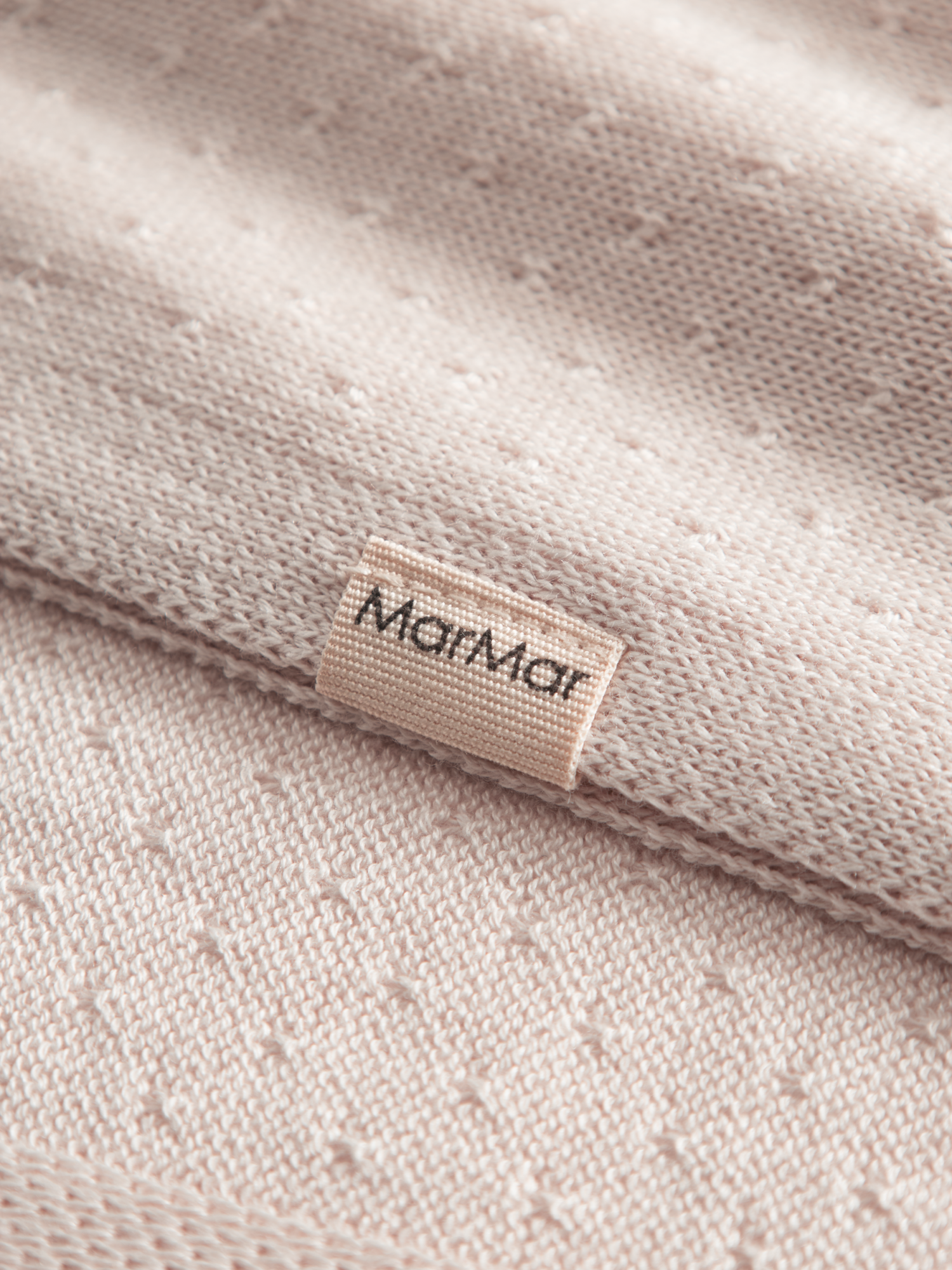 Alia Knit Blanket 'Misty Pink' van MarMar Copenhagen. Een lichtroze, fijn gebreid deken met een mooi pointelle patroon en 70x100cm groot. Dit dekentje is gemaakt van 60% biologisch katoen & 40% zijdezacht modal, ademende en natuurlijke materialen, waardoor het heerlijk zacht aanvoelt. Onderweg komt een babydeken altijd van pas in de kinderwagen. Maar ook thuis past het heel mooi in het wiegje van je baby.